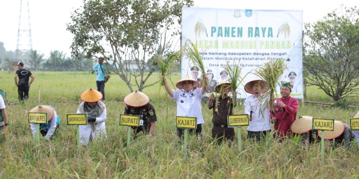 BANGKA TENGAH, Portal Komitmen memperkuat ketahanan pangan daerah kembali ditegaskan Gubernur Kepulauan Bangka Belitung (Babel), Hidayat Arsani, saat menghadiri Panen Raya dan