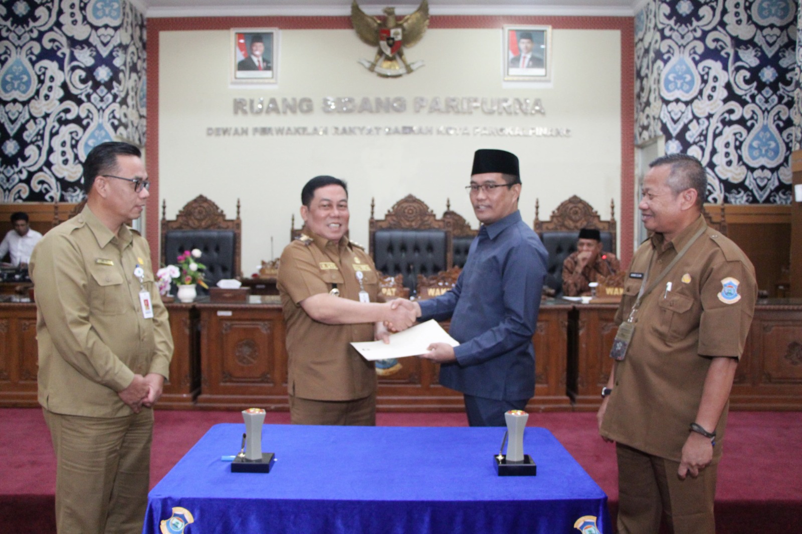 Penjabat (Pj) Wali Kota Pangkalpinang, Unu Ibnudin menghadiri rapar paripurna penyampaian rekomendasi DPRD atas Laporan Keterangan Pertanggungjawaban (LKPJ) Wali Kota Pangkalpinang tahun 2024, di ruang sidang paripurna DPRD Pangkalpinang, Senin (28/4/2025).